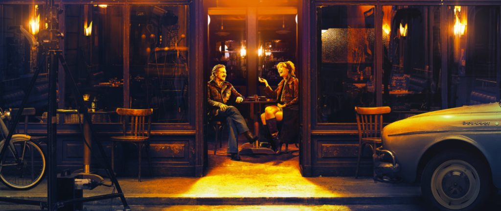 Dans le film, la société créée par Antoine (Guillaume Canet) offre à chacun de ses clients une plongée dans une époque du passé qu’il veut vivre ou revivre. “L’idée m’est venue de ma propre saturation face à l’inflation de séries, comme si la fiction « classique », c’est-à-dire des images dans un écran, n’impactait plus assez le spectateur. J’ai imaginé cette boîte de reconstitution théâtrale qui immergerait physiquement le spectateur dans l’histoire. Rien à voir avec un dispositif sophistiqué du type « Black Mirror » ou autre. Là, l’innovation d’Antoine repose sur de simples éléments de décor, une documentation, des comédiens. Je voulais montrer des coulisses, comme celles dans lesquelles j’évolue depuis que je suis né. Ça nous a permis, à moi et mon équipe, de mettre en valeur l’aspect artisanal du cinéma et du théâtre ! Habilleurs, décorateurs, machinos, assistants, comédiens : le film présente une équipe au travail !”, se souvient Nicolas Bedos. (Extrait du dossier de presse)
