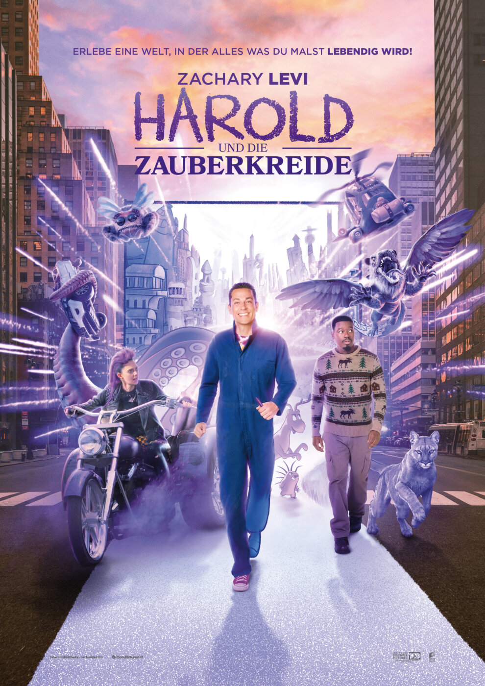 Harold ist ein vierjähriger Junge, der dank eines Stifts in der Farbe Lila seine ganz eigene Welt erschaffen kann. Ganz gleich ob er den Mond für einen Spaziergang bei Mondschein malt, oder er aus Versehen gleich ein ganzes Meer zeichnet – der Fantasie des kleinen Jungen sind keine Grenzen gesetzt und was er malt, wird Realität. Inzwischen ist der kleine Harold erwachsen geworden und zeichnet sich aus dem Papier hinaus in die reale Welt. Mit seinem lila Wachsstift in der Hand kann er bald schon die Realität verändern. Als die Kraft der Vorstellung jedoch in die falschen Hände gerät, muss Harold mit der Hilfe seiner Freunde die Welt vor Schlimmeren bewahren…
